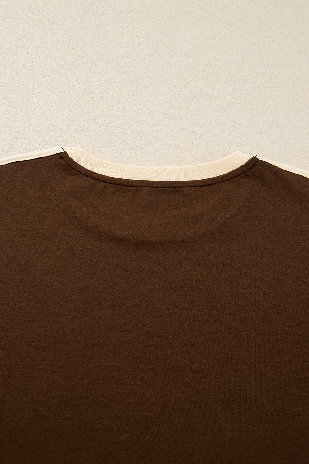 Dark Brown Varsity Striped Crew Neck Long Sleeve Top