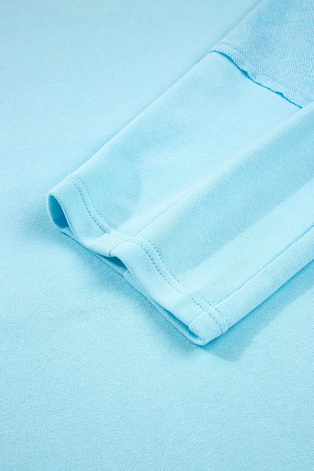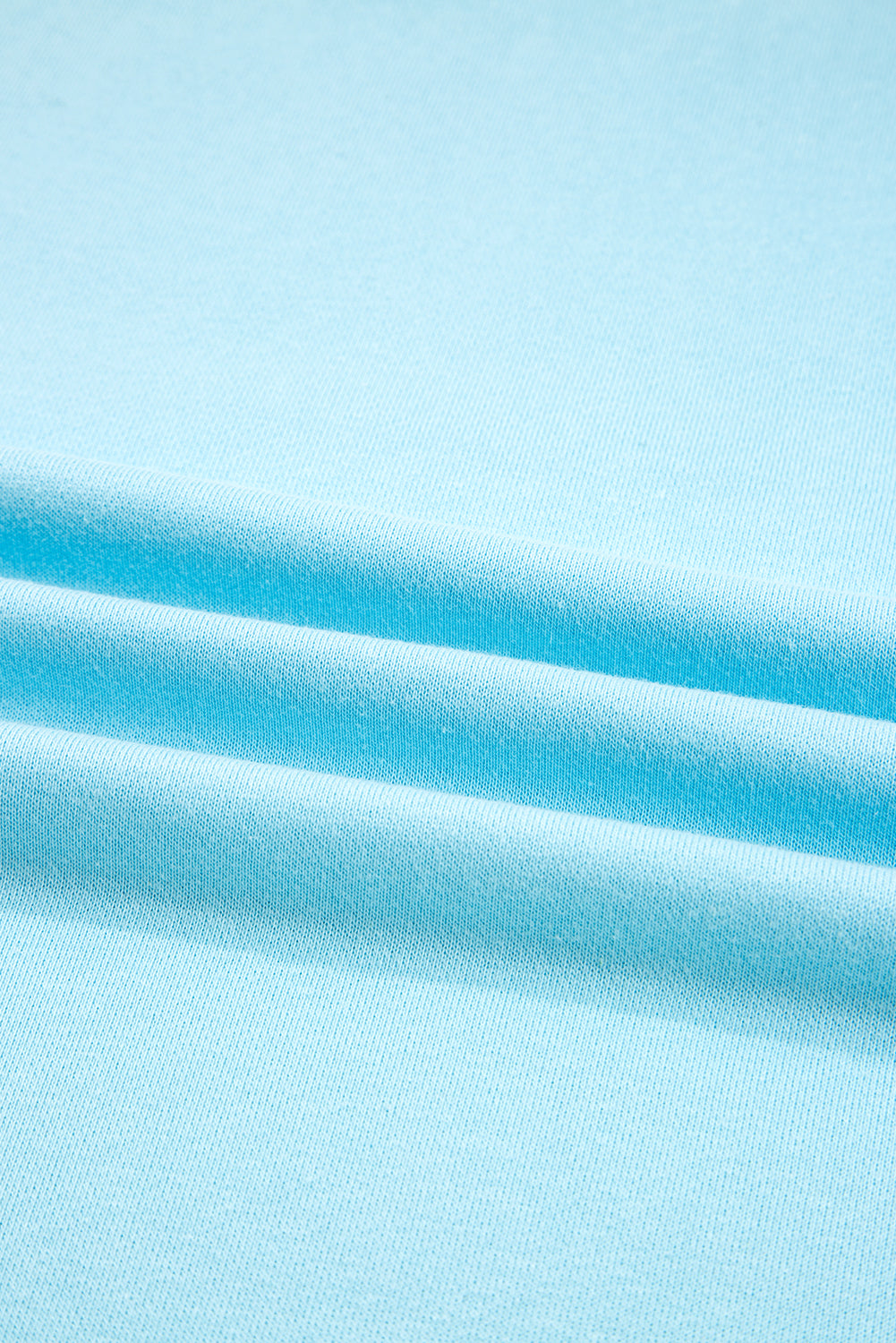 Aruba Blue Solid Color Pullover Top Plus Size Raw Hem Shorts Set