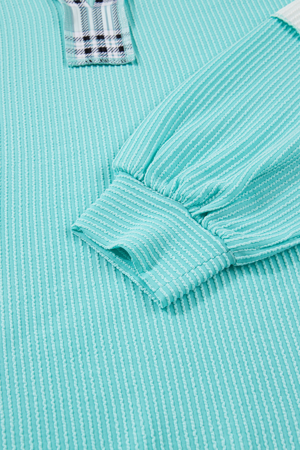 Aruba Blue Twist Ribbed Colorblock Plaid Patchwork Plus Size Top
