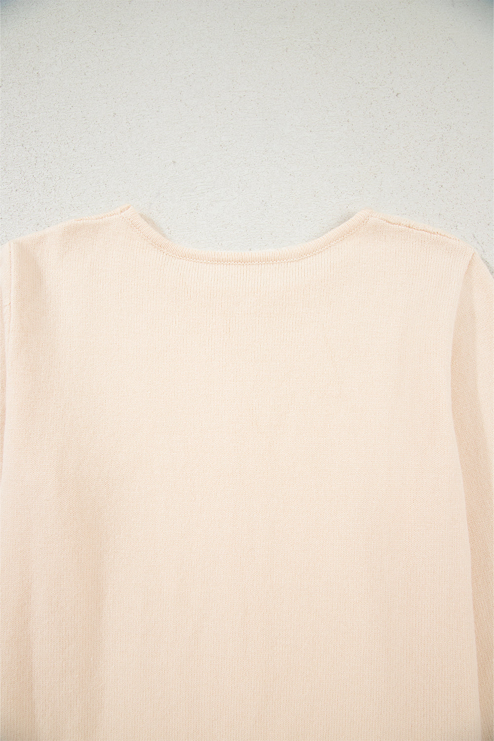 Beige Bohemian Floral Ruffle Hem Patchwork Knit Sweater