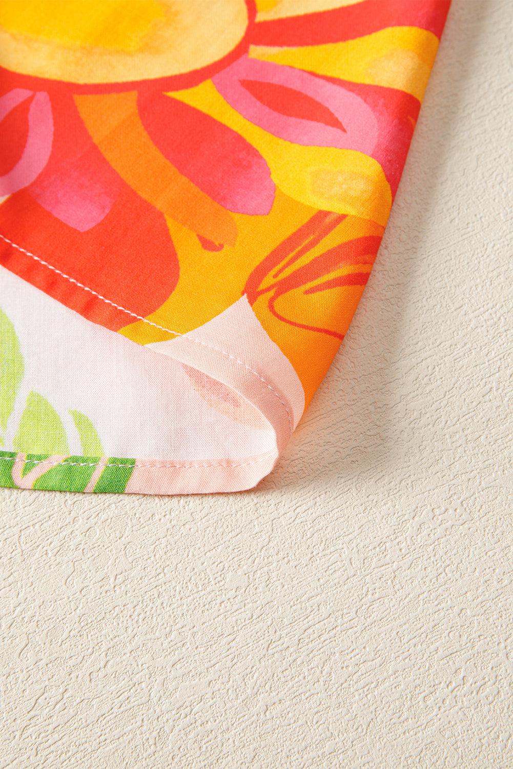 Beige Floral Print Shirred Detail Puff Sleeve Flowy Maxi Dress
